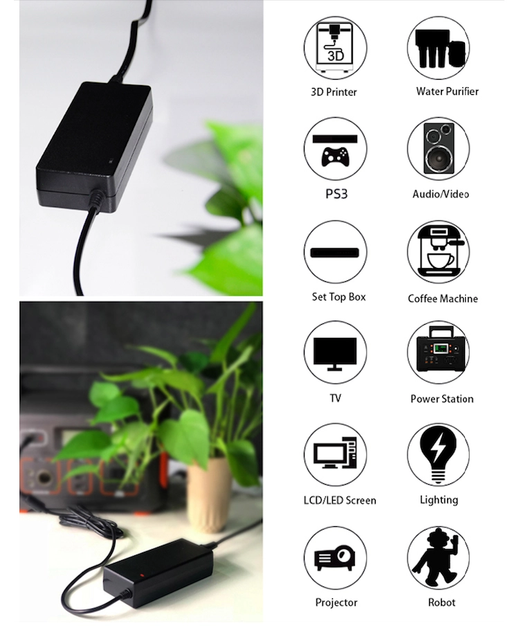 * 120W श्रृंखलाका लागि थप एकाइहरू: 12V/15V/20V/24V/36V/48V उपलब्ध * सुरक्षा: OCP/OVP/OTP, SCP, स्वचालित ओभरलोड कट-अफ, ओभर भोल्टेज कट-अफ, स्वचालित थर्मल कट-अफ। * व्यापक अनुकूलताहरू: एलईडी स्ट्रिप लाइटहरू, थ्रीडी प्रिन्टर, ह्याम रेडियो ट्रान्सीभर, सीसीटीभी क्यामेरा, कार सबवुफर एम्प, अडियो एम्पलीफायर, वायरलेस राउटर, एडीएसएल बिरालो, ह्युमिडिफायर, हब, किबोर्ड, बीटी स्पिकर, मोनिटर, वेबक्याम, डीभीआर, अडियो / भिडियो आपूर्ति
