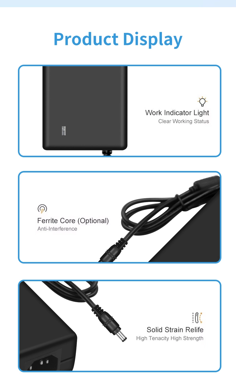 AC 100-240V चौडा भोल्टेज इनपुट विश्वभरका १०० भन्दा बढी देशहरूमा पावर ग्रिडहरूसँग उपयुक्त छ। 1.5m विस्तारित आउटपुट केबल (1.0mm² व्यास) 180° घुमाउन मिल्ने DC कनेक्टरसँग जोडिएको विभिन्न स्थापना परिदृश्यहरूमा अनुकूल हुन्छ। केवल 120×60×30mm को कम्प्याक्ट साइजको साथ, यो उही पावरको परम्परागत एडेप्टरहरू भन्दा 35% सानो छ, केवल 280g तौलको - पोर्टेबिलिटी 50% ले सुधार गर्दै।