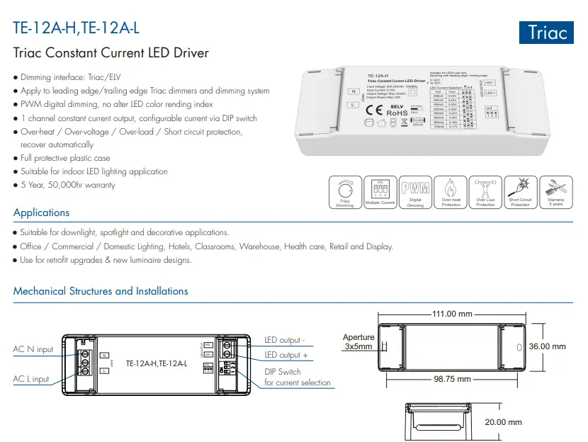 Starwell उच्च गुणस्तर 12W स्थिर वर्तमान triac dimming नेतृत्व ड्राइभर ओभरभोल्टेज, overcurrent र सर्ट-सर्किट सुरक्षा प्रकार्यहरू एकीकृत गर्दछ, र उच्च शक्ति कारक र कम हार्मोनिक विकृति, बहु अन्तर्राष्ट्रिय ऊर्जा दक्षता र सुरक्षा मापदण्डहरू पूरा गर्दछ। यसको कम्प्याक्ट डिजाइनले यसलाई स्थापना गर्न सजिलो बनाउँछ र विभिन्न इनडोर प्रकाश परिदृश्यहरू जस्तै डाउनलाइटहरू, स्पटलाइटहरू, र सजावटी बत्तीहरूको लागि उपयुक्त बनाउँछ, यसलाई ऊर्जा बचत नवीकरण र स्मार्ट प्रकाश अनुप्रयोगहरूको लागि एक आदर्श चालक समाधान बनाउँछ। उत्पादनविशेषताहरु: