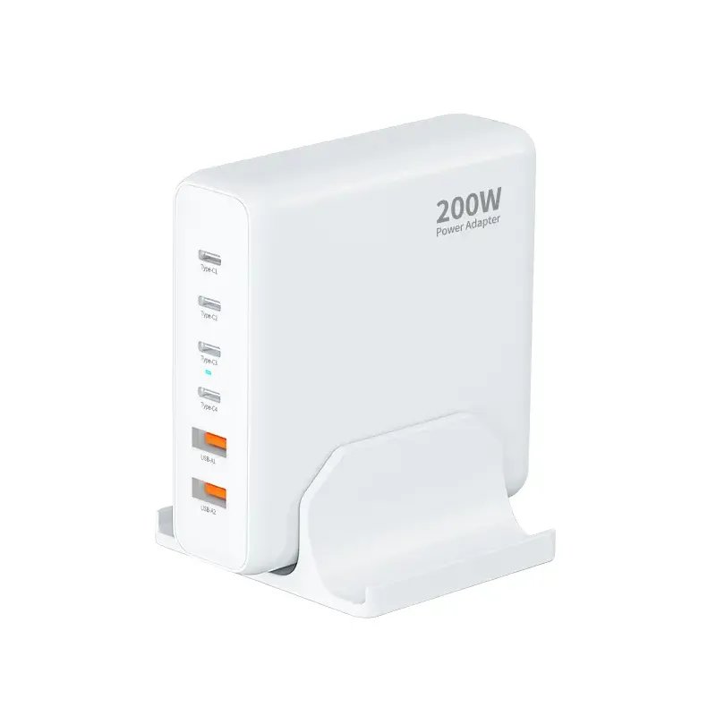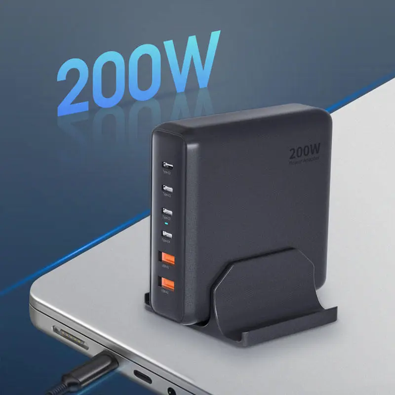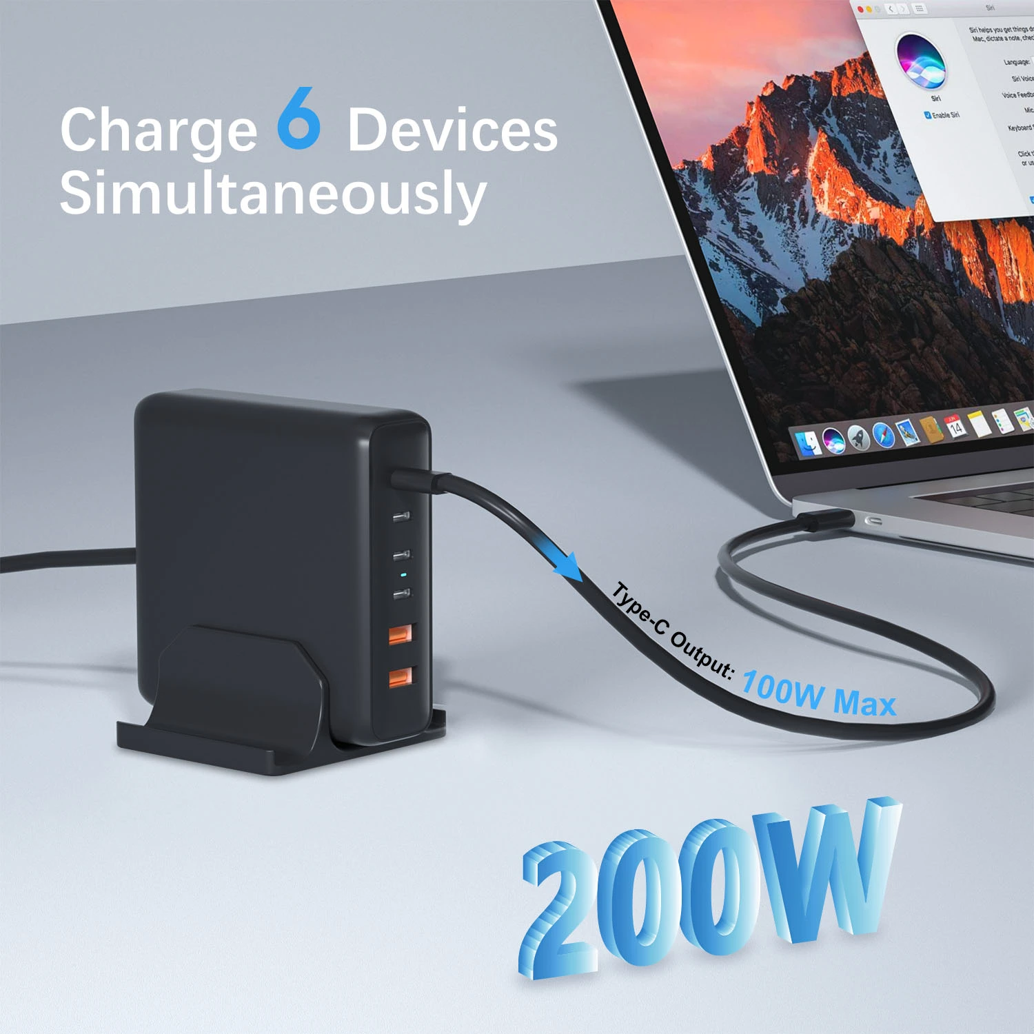 GAN 200W फास्ट चार्जर 4 USB-C + 2 USB-A 200W PD चार्जर
