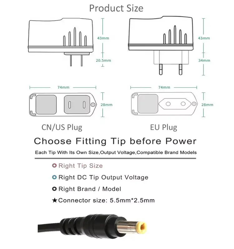 AC प्लग: US/EU/AU/UK/CN/JP प्लगहरू आदानप्रदान गर्न सकिने
