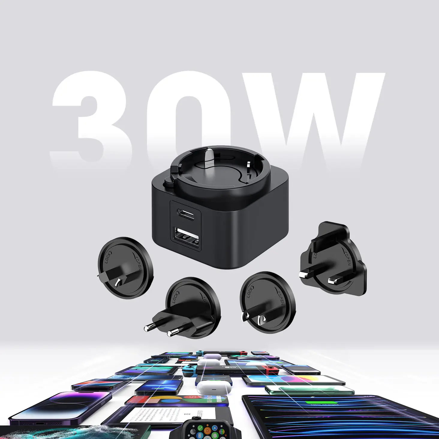 30W इन्टरचेन्जेबल प्लग PD चार्जर घर, कार्यालय र यात्राको लागि उपयुक्त छ, यो आधुनिक, मोबाइल जीवनको लागि सबै-इन-वन चार्जिङ समाधान हो।