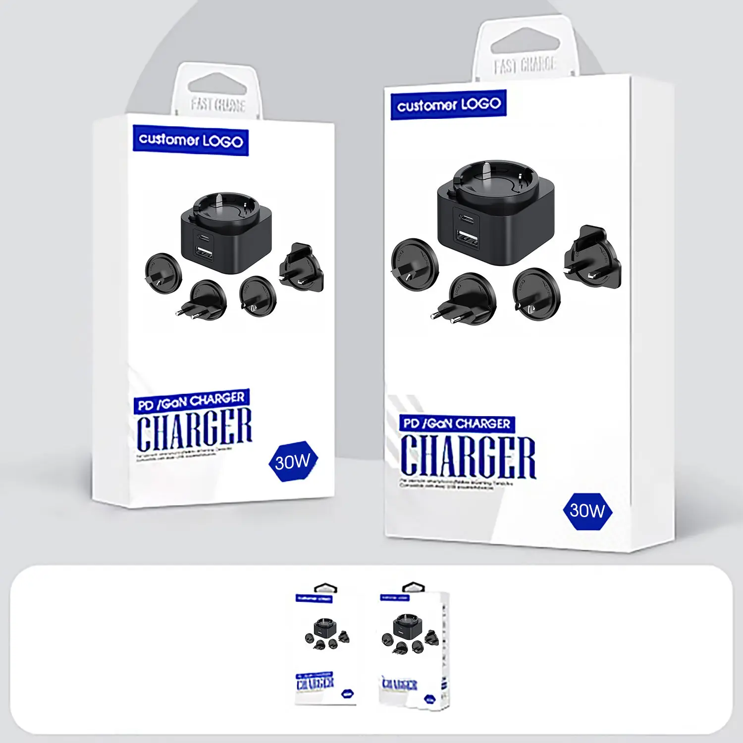 30W USB भित्ता PD चार्जर विनिमेय प्लगहरूको साथ |