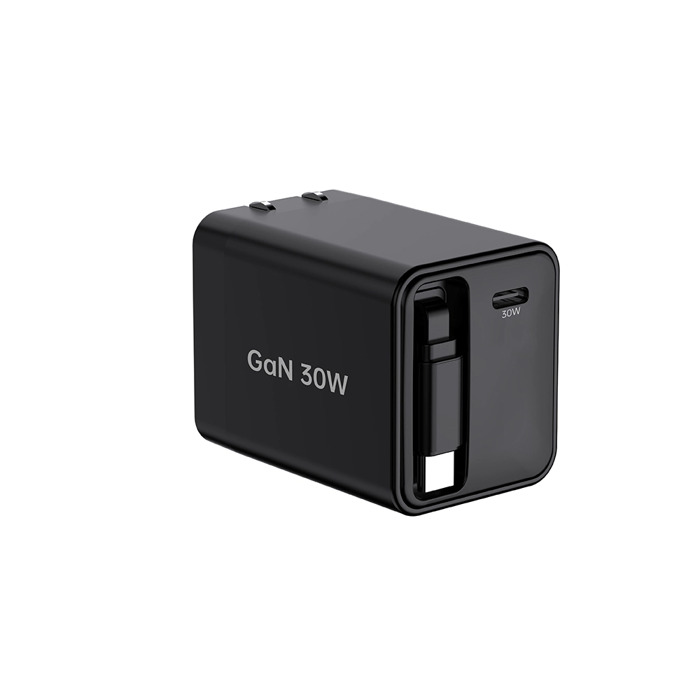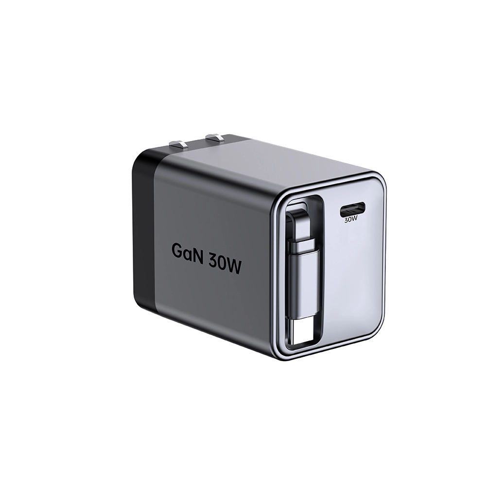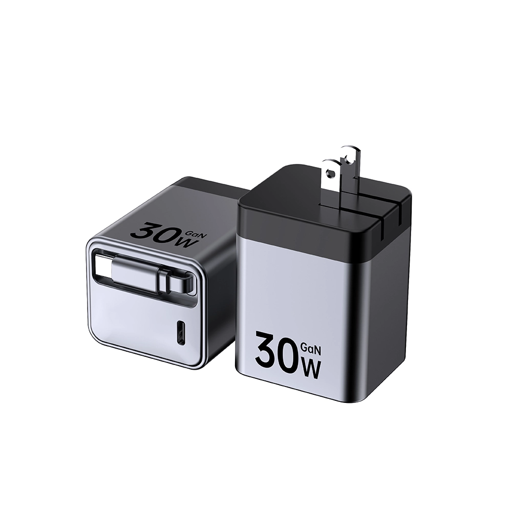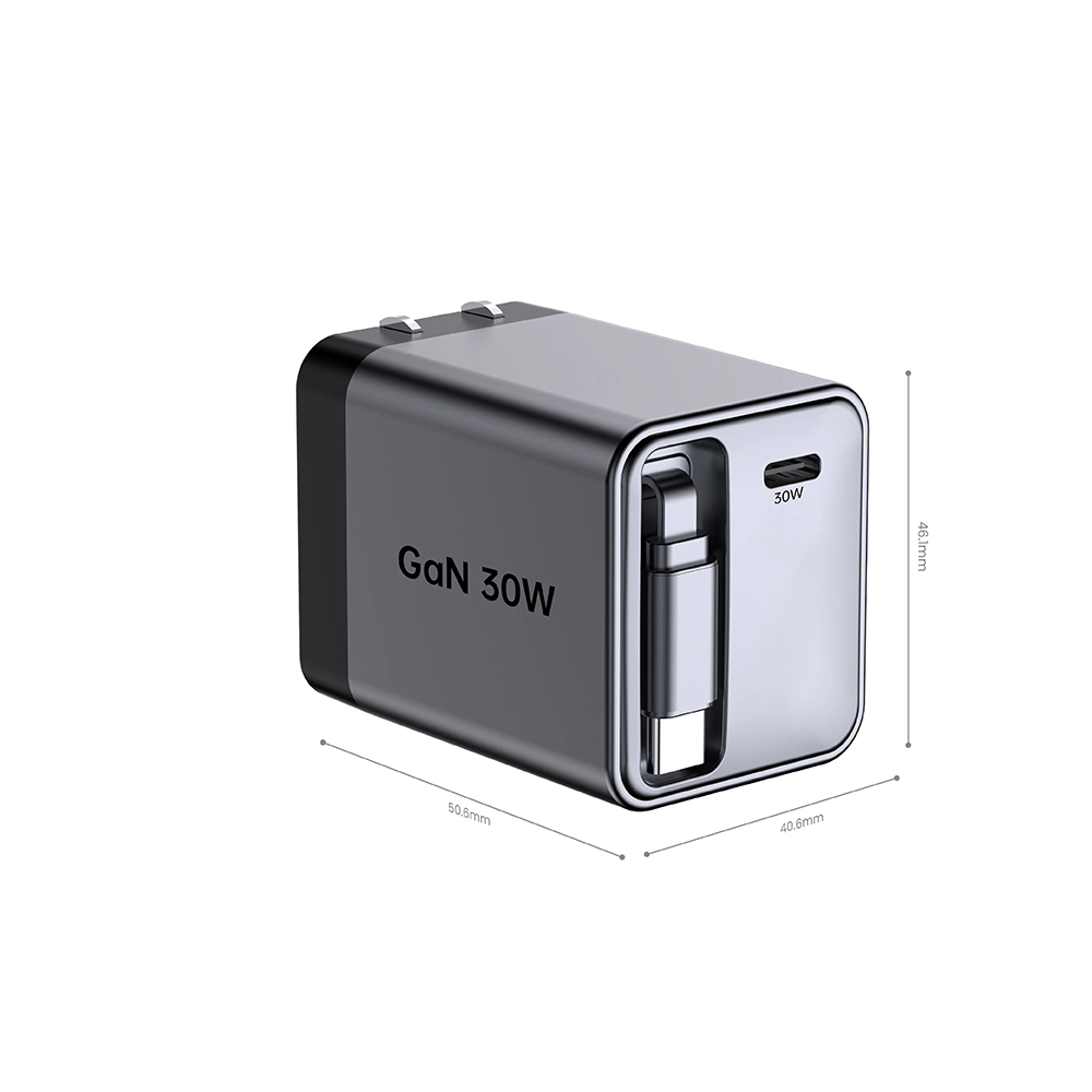 30W US प्लग फोल्ड गर्न मिल्ने द्रुत चार्जर रिट्र्याक्टेबल USB c केबलको साथ