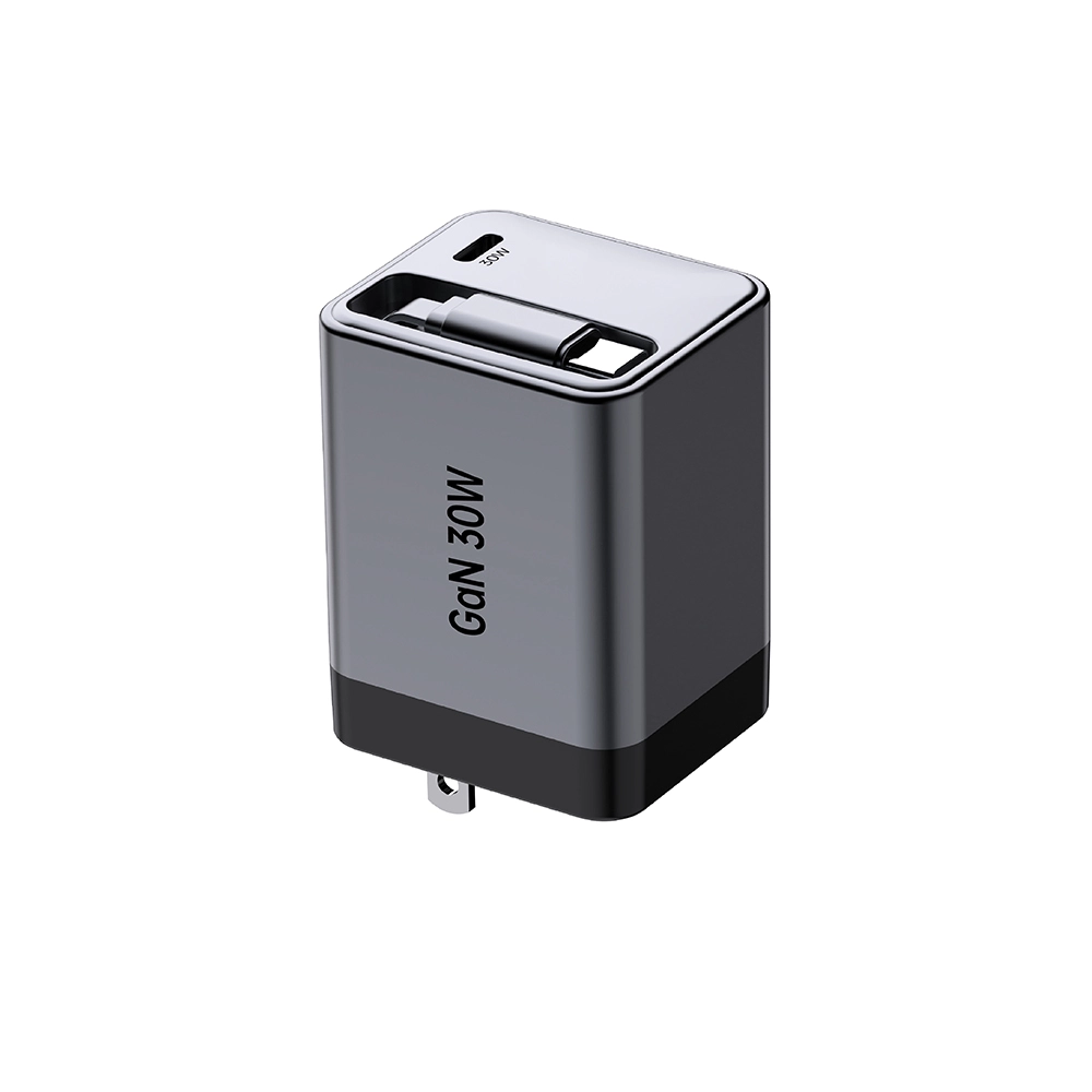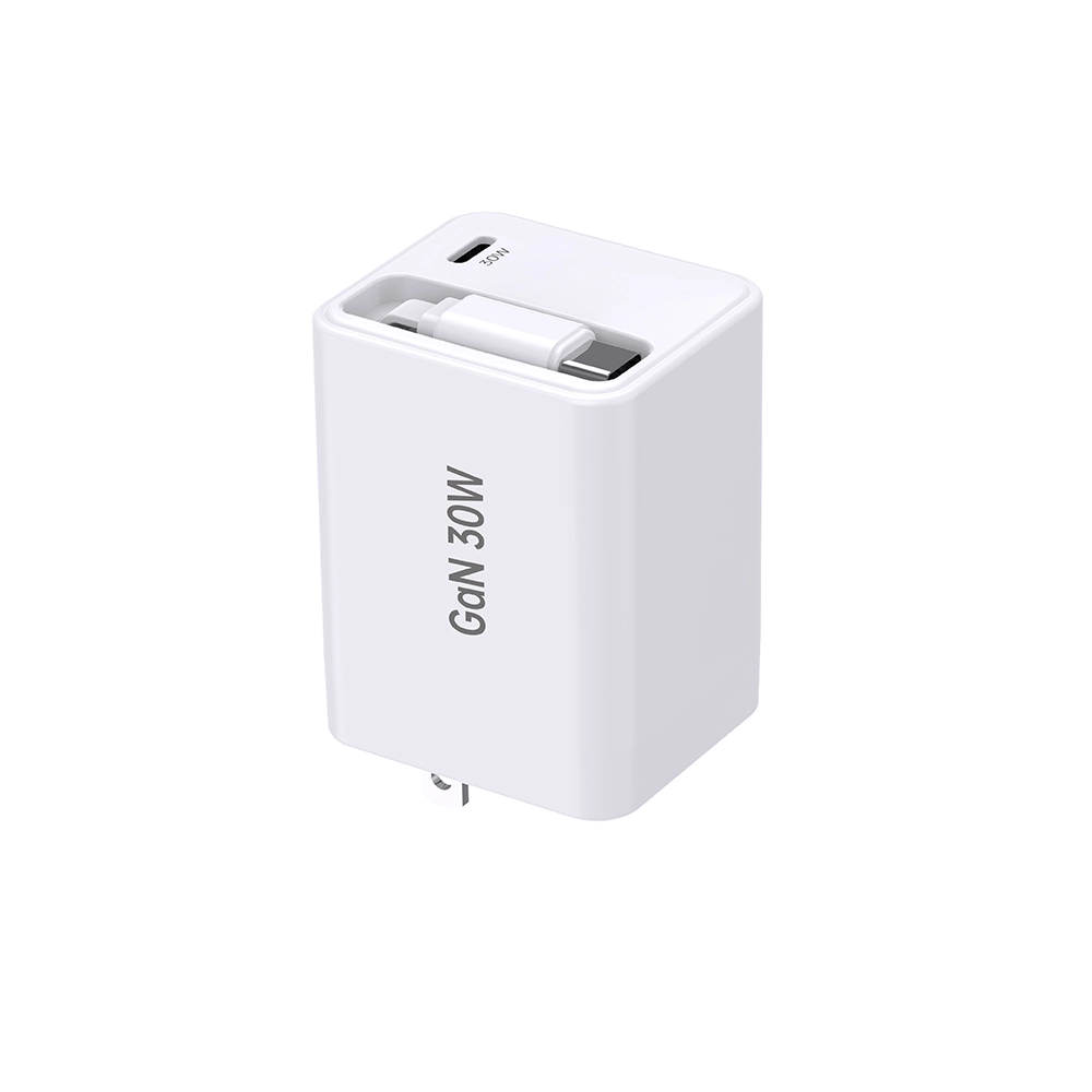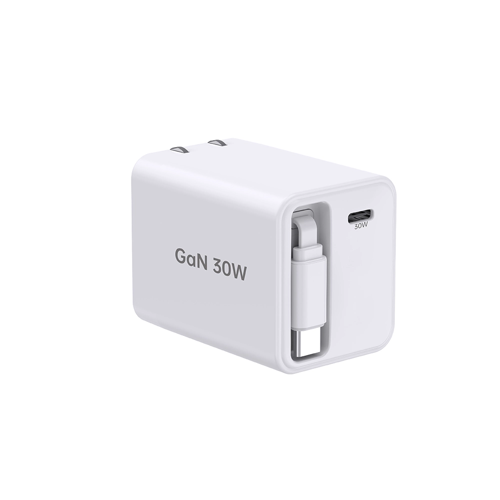 30W US प्लग फोल्ड गर्न मिल्ने द्रुत चार्जर रिट्र्याक्टेबल USB c केबलको साथ |
