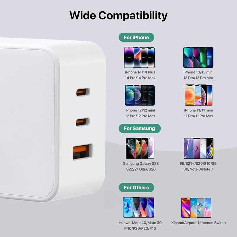 बहु-पोर्ट स्मार्ट चार्जिङ-डुअल USB-C र USB-A पोर्टहरूसँग सुसज्जित, यसले तपाईंलाई गतिलाई असर नगरी एकै साथ धेरै उपकरणहरू चार्ज गर्न अनुमति दिन्छ।