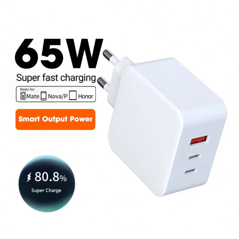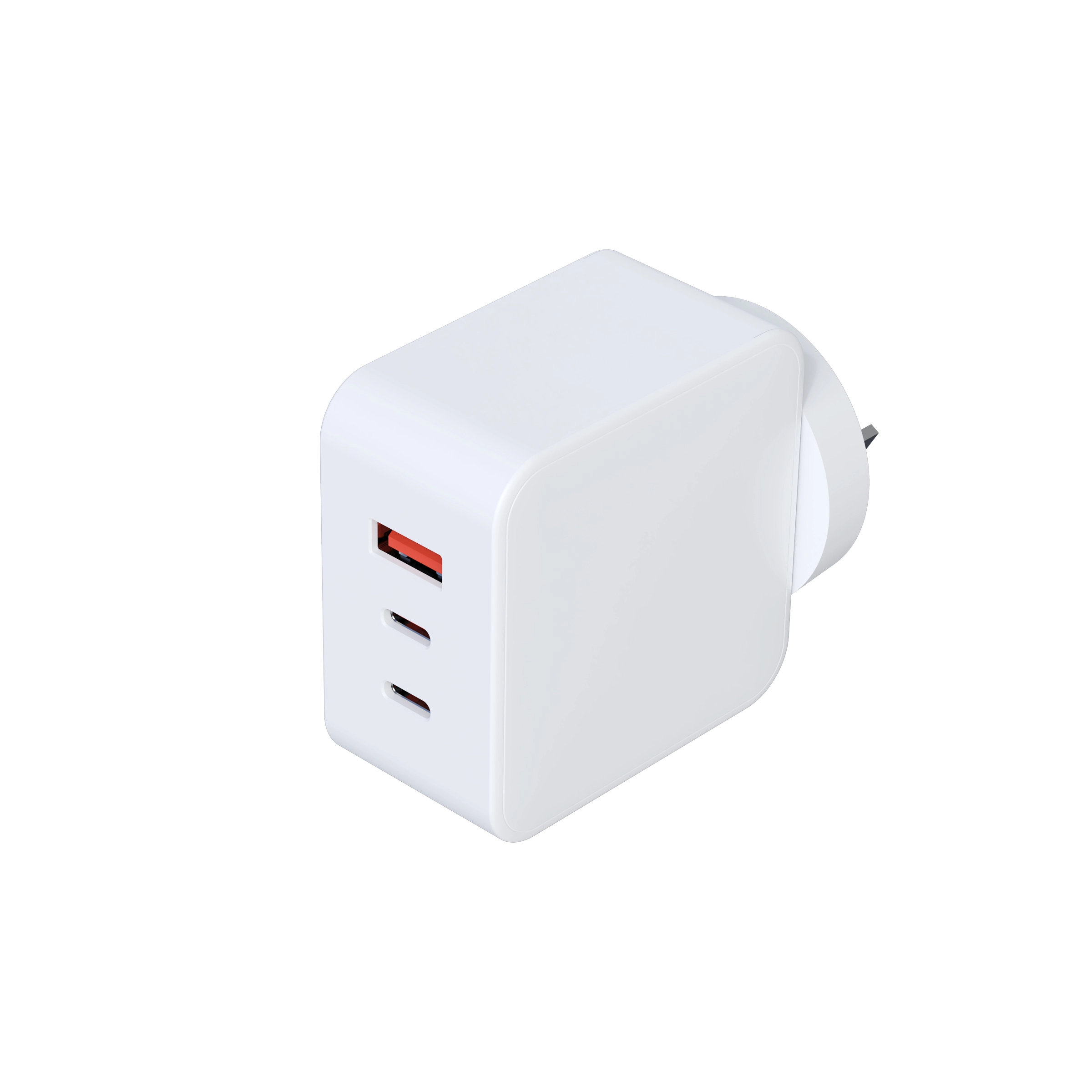 ल्यापटप 2A आउटपुटको लागि 65W PD 3.0 अल्ट्रा-थिन 3 पोर्ट UK GaN चार्जर फास्ट चार्जर OTP |