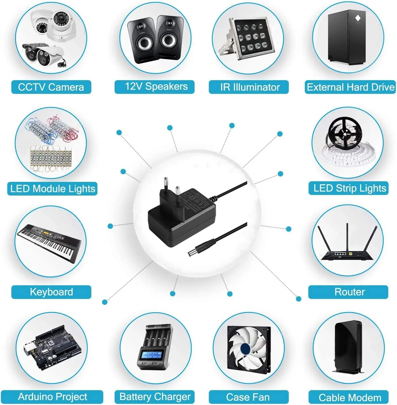 स्थिर 12W आउटपुट - सबै चार मोडेलहरूले निरन्तर र स्थिर वर्तमान प्रदान गर्दछ, राउटरहरू, निगरानी प्रणालीहरू, सेट-टप बक्सहरू, LED प्रकाश, र अन्य उपकरणहरूसँग पूर्ण रूपमा मिल्दो।