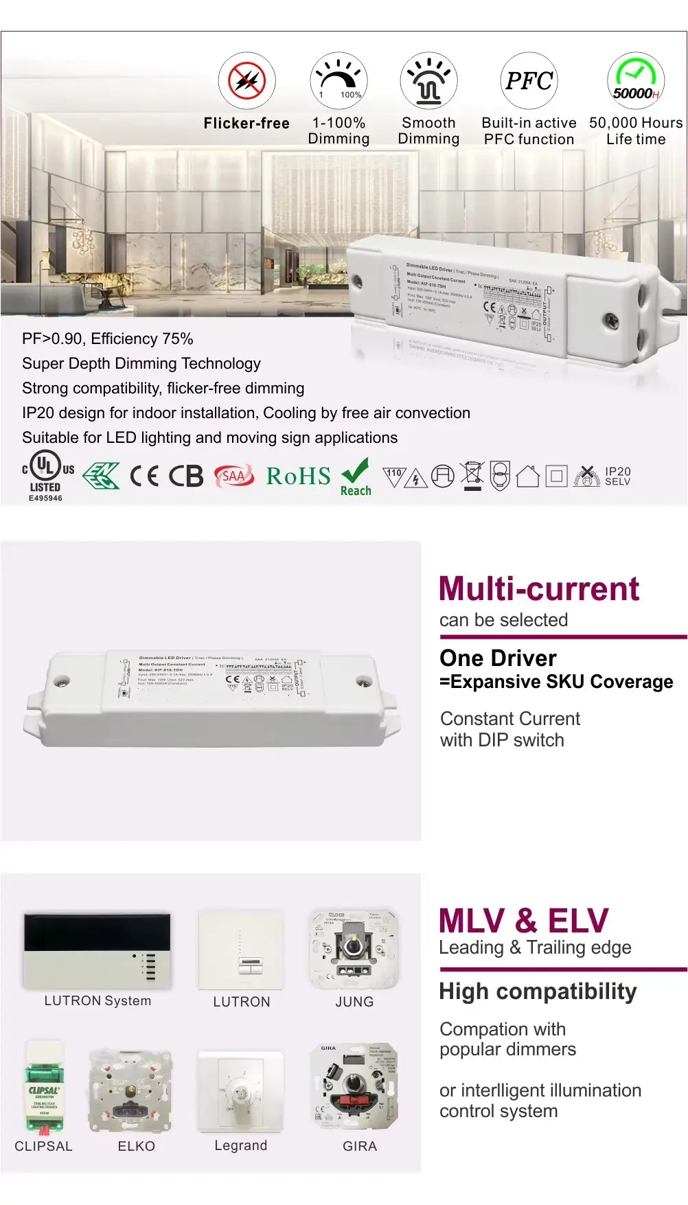 4. डिमिङ अनुकूलता टाउको दुखाइ समाधान गर्नुहोस्। हाम्रो ड्राइभरको सामान्य TRIAC dimmers को एक विस्तृत श्रृंखला संग सहज प्रदर्शन को लागी पूर्व-परीक्षण गरिएको छ, तपाईको विकास समय र समर्थन लागतहरु को बचत।