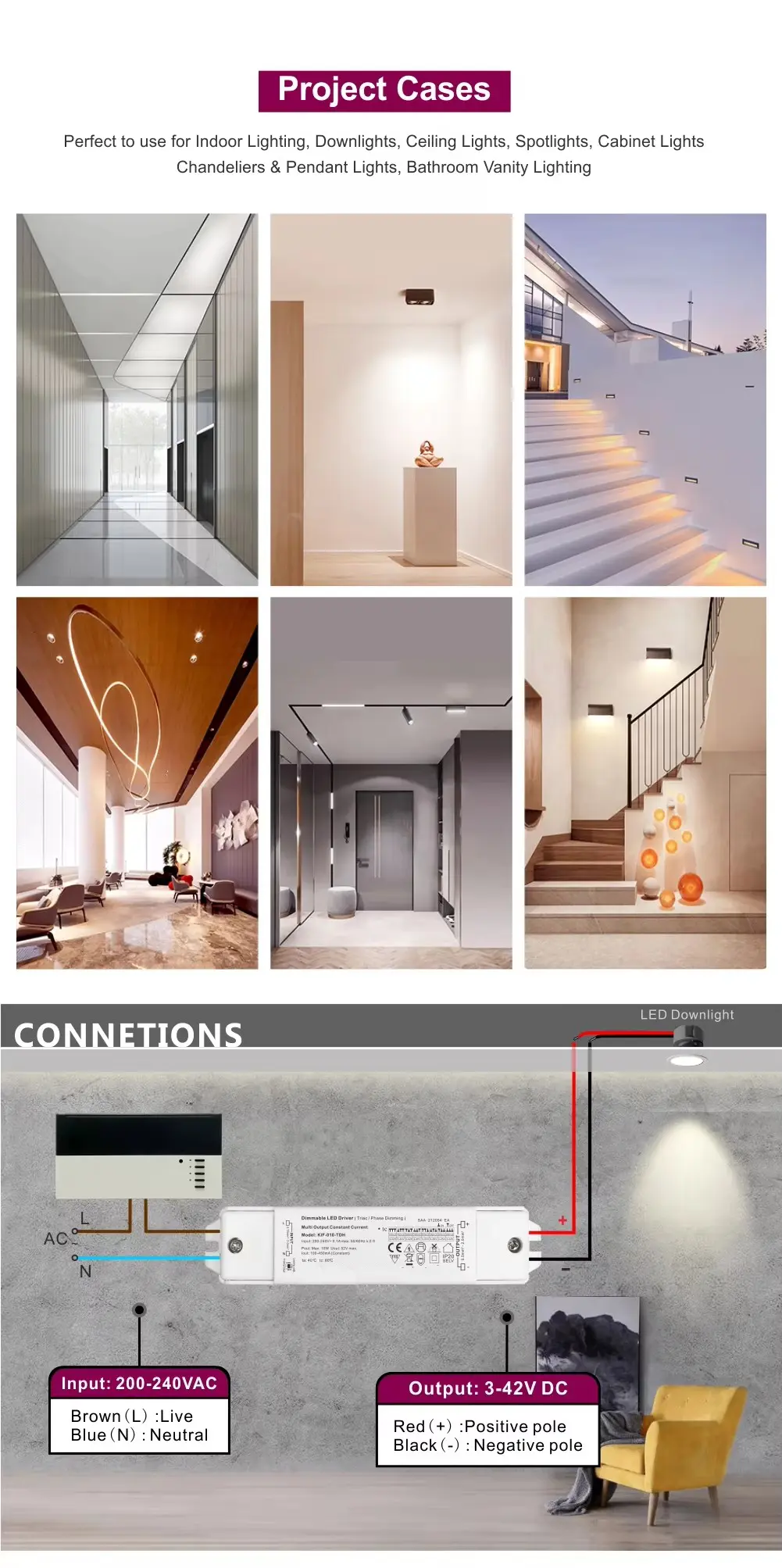 बलियो पावर र उच्च दक्षता: उच्च पावर फ्याक्टर करेक्सन (PF>0.9) र कम टोटल हार्मोनिक डिस्टोर्शन (THD) को साथ, हाम्रो ड्राइभरले विश्वव्यापी ऊर्जा दक्षता आवश्यकताहरू पूरा गर्दछ, तपाईंको विद्युतीय प्रणालीमा लोड घटाउँछ, र राम्रो, भरपर्दो कार्यसम्पादनको साथ सञ्चालन गर्दछ।